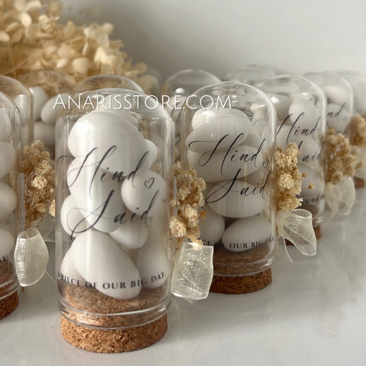 Mini Cloche en Verre avec Dragées – Personnalisée pour Mariage