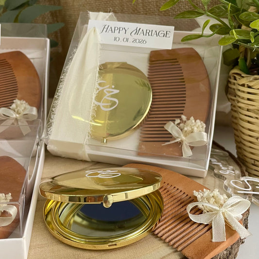 Coffret cadeau raffiné – Peigne & miroir personnalisés