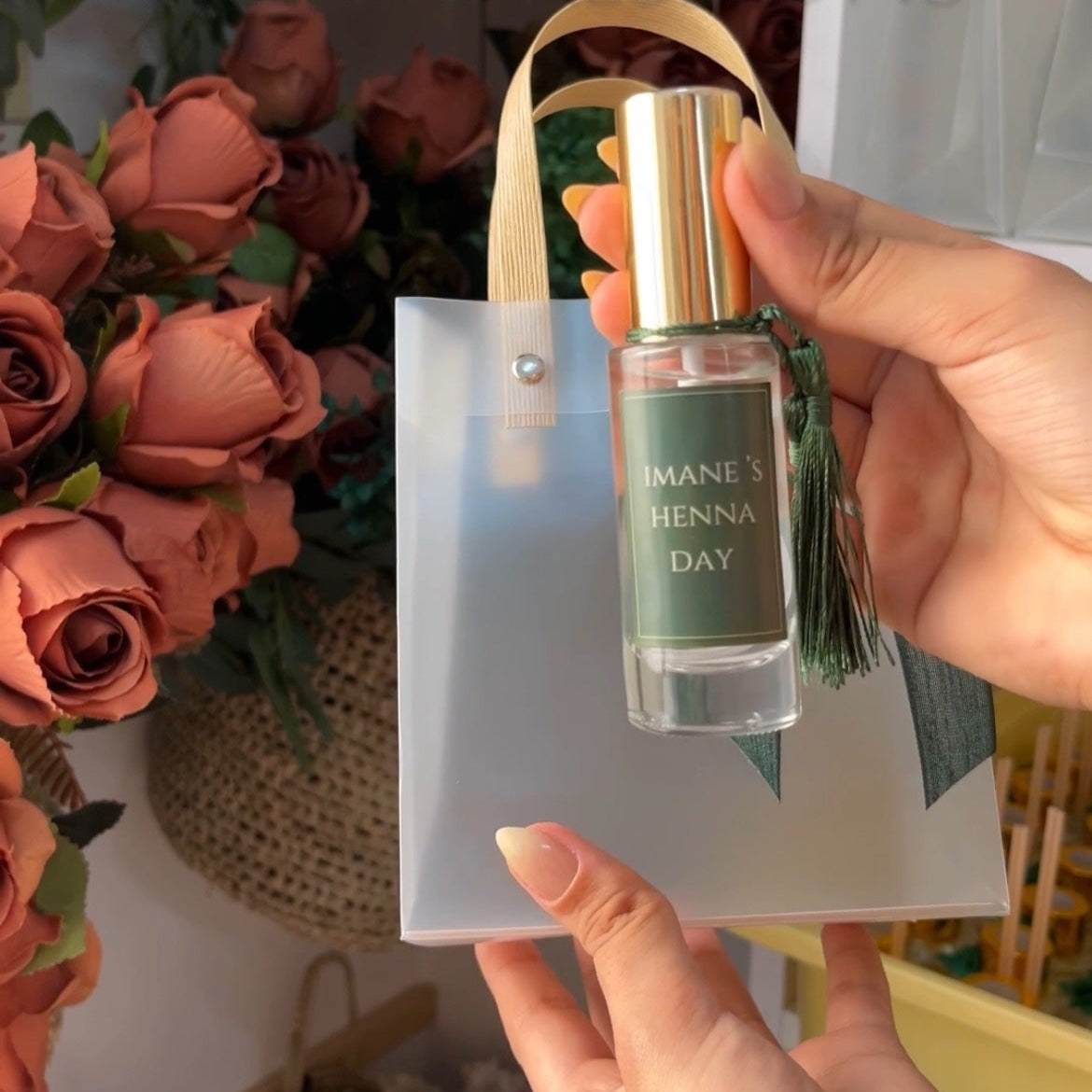 Un flacon de parfum raffiné (spray) personnalisé pour l’occasion.